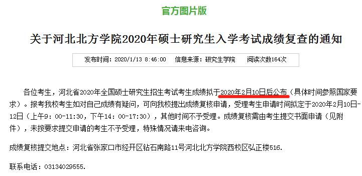 来看河北北方学院2020考研成绩查询复查的通知!研究生招生初试成绩将于2020年2月10日后可查询,大家可以不用惦记好好过个年啦,过年回来后咱们就可以进行成绩查询啦!