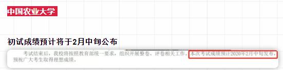 中国农业大学2020考研初试成绩预计将于2月中旬公布