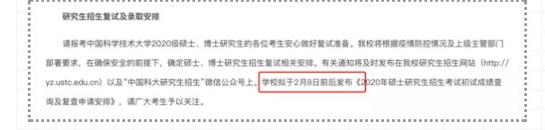 中国科学技术大学2020考研成绩查询时间:2月8日前后