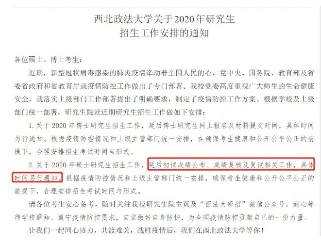 西北政法大学2020考研成绩查询时间延后