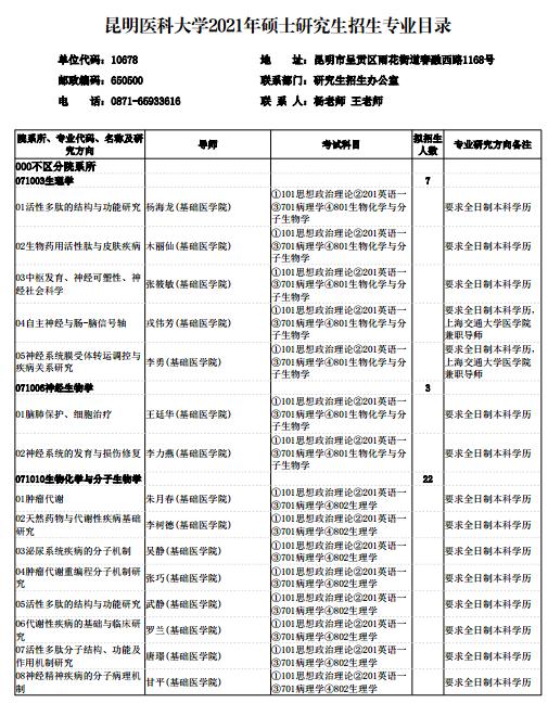 昆明医科大学2021考研招生简章及专业目录.pdf