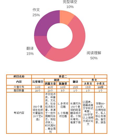 2021考研时间安排表之英语二(附考试题型及分值)