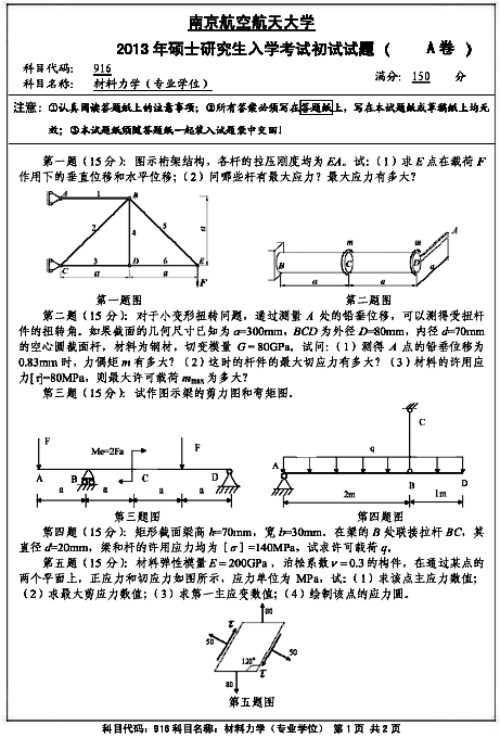 以上就是为考研人分享的:南京航空航天大学2013年916材料力学(专业学位)初试考研真题,希望能为大家考研复习带来帮助,预祝大家考研成功。