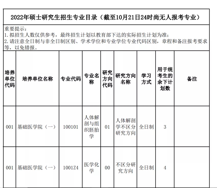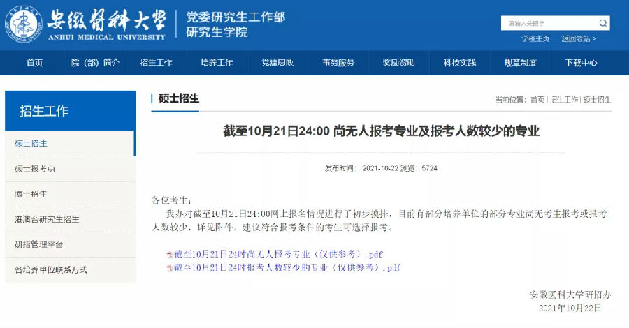 安徽医科大学目前尚未公布报考人数,只是公布了截至10月21日尚无人报考或报考人数较少的专业。