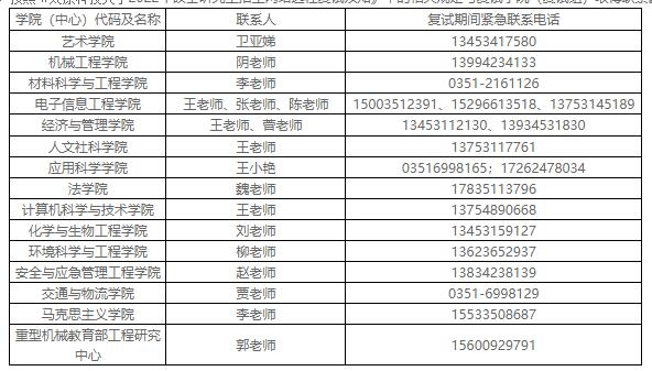 为确保2022年硕士研究生招生复试工作顺利进行,现将复试现场各学院(复试组)紧急联系电话公布,仅供复试当天考生复试遇到突发情况时,按照《太原科技大学2022年硕士研究生招生网络远程复试须知》中的相关规定与复试学院(复试组)取得联系。