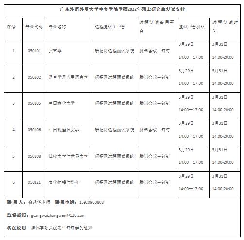 2022年广东外语外贸大学中文学院学硕考研复试实施细则