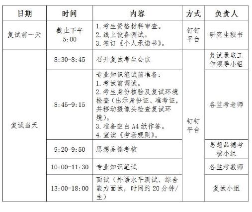 复试采用线上专业课笔试和线上面试相结合的方式。线上面试包括综合能力面试、外语水平测试和思想品德考核。
