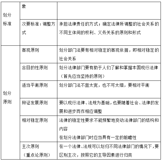 (4)法律部门是主客观因素相结合的产物,是人类社会生存和发展的客观结果,最终是主观的