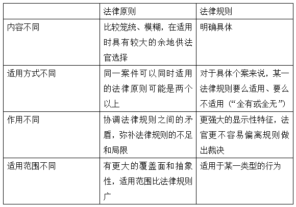 (1)联系:法律原则是法律规则的来源和基础,法律规则是法律原则的具体化