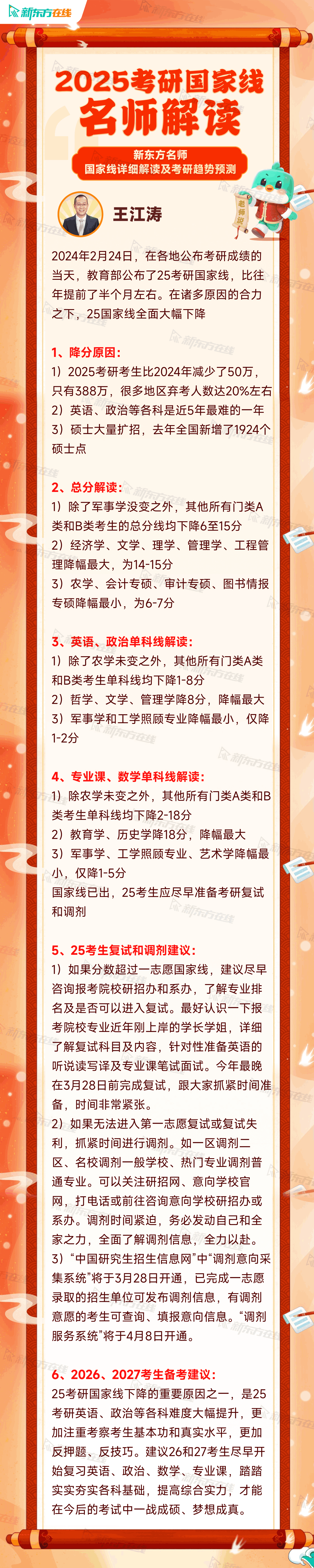 考研名师王江涛 解读2025国家线及趋势