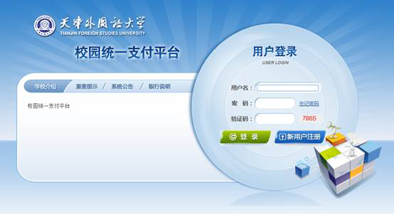天津外国语大学校园统一支付平台是针对在校生、老师及外校人员进行网上缴费的一个收费系统。平台与建设银行合作,允许学生、老师及校外人员使用建行卡、支付宝或微信进行缴费。