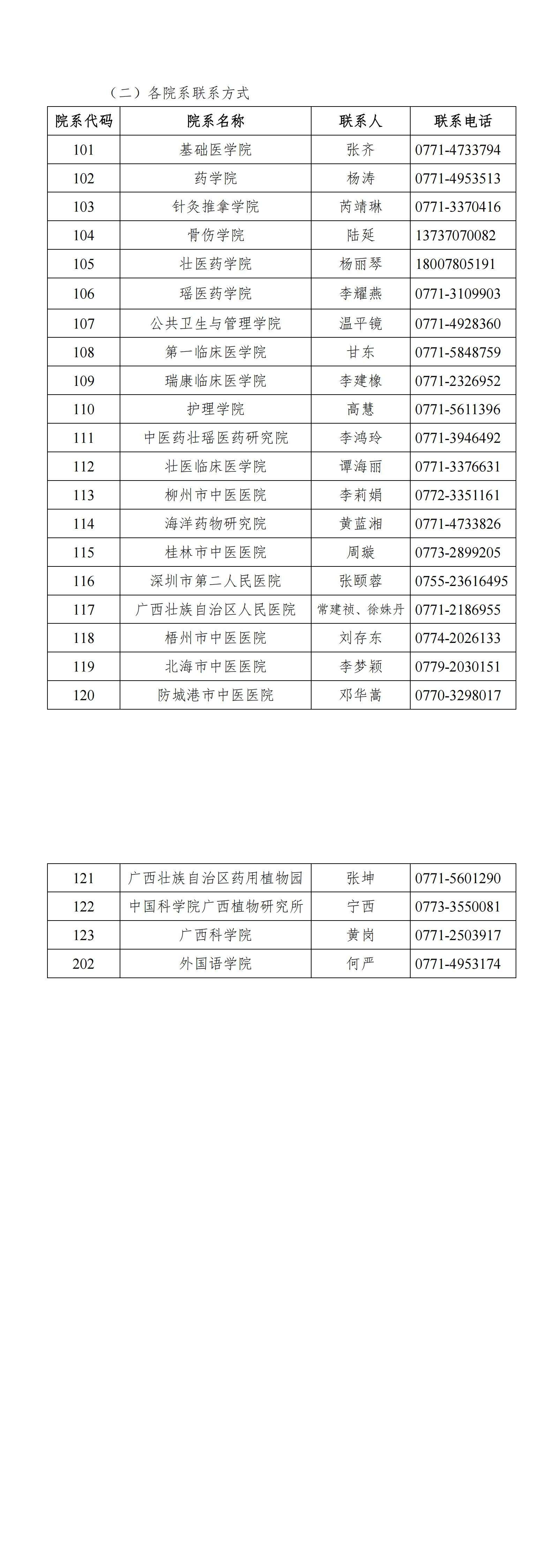 (二)各院系联系方式