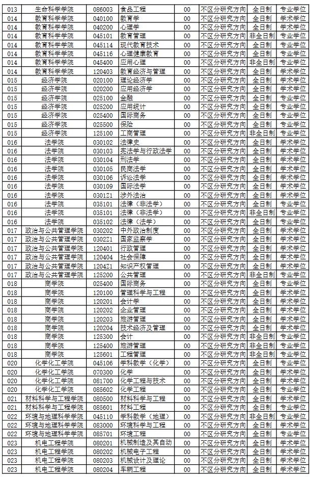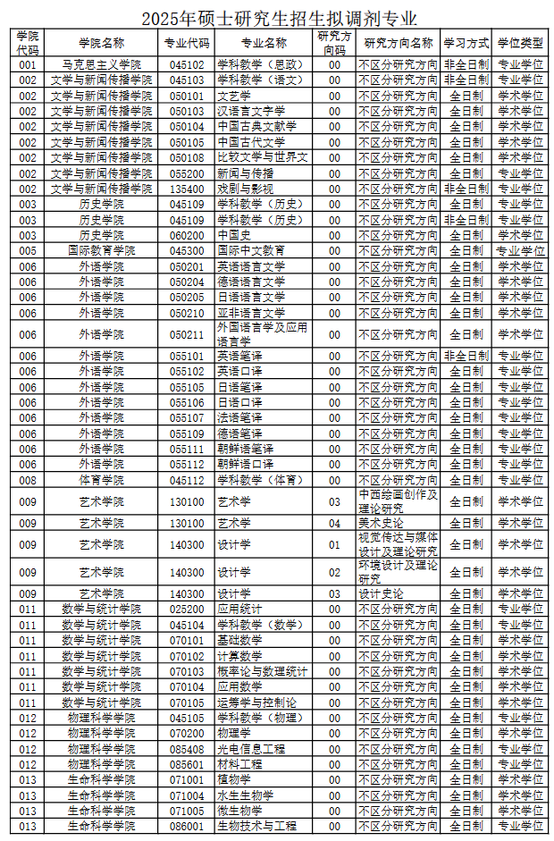 我校2025年硕士研究生调剂工作将于4月8日“中国研究生招生信息网”调剂系统开通后正式开始。为便于考生了解我校调剂信息,现将拟接收调剂专业公布如下,调剂要求、调剂程序、调剂名额等信息详见我校后续发布的调剂公告。