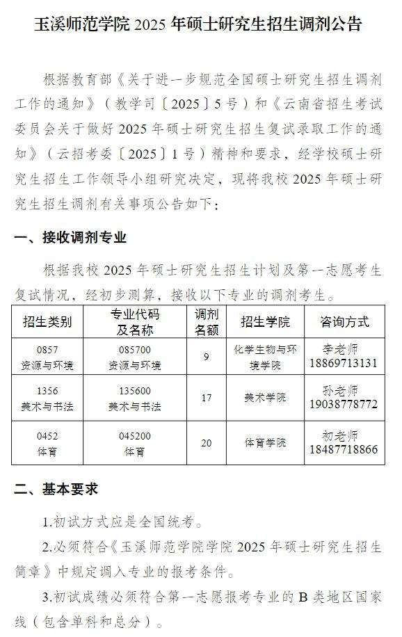 以上就是关于“玉溪师范学院2025年考研调剂公告”的介绍,更多有关2025年考研调剂的内容,请持续关注本频道的更新!