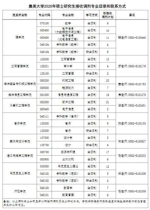 以上就是关于“集美大学2025年考研调剂信息公告”的介绍,更多有关2025年考研调剂的内容,请持续关注本频道的更新!