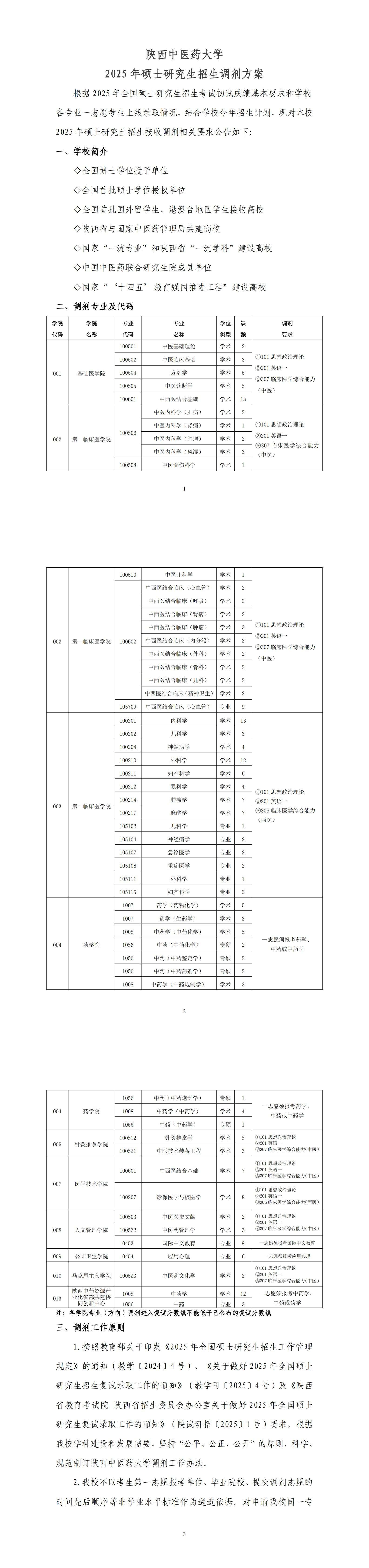 陕西中医药大学2025年硕士研究生招生调剂方案