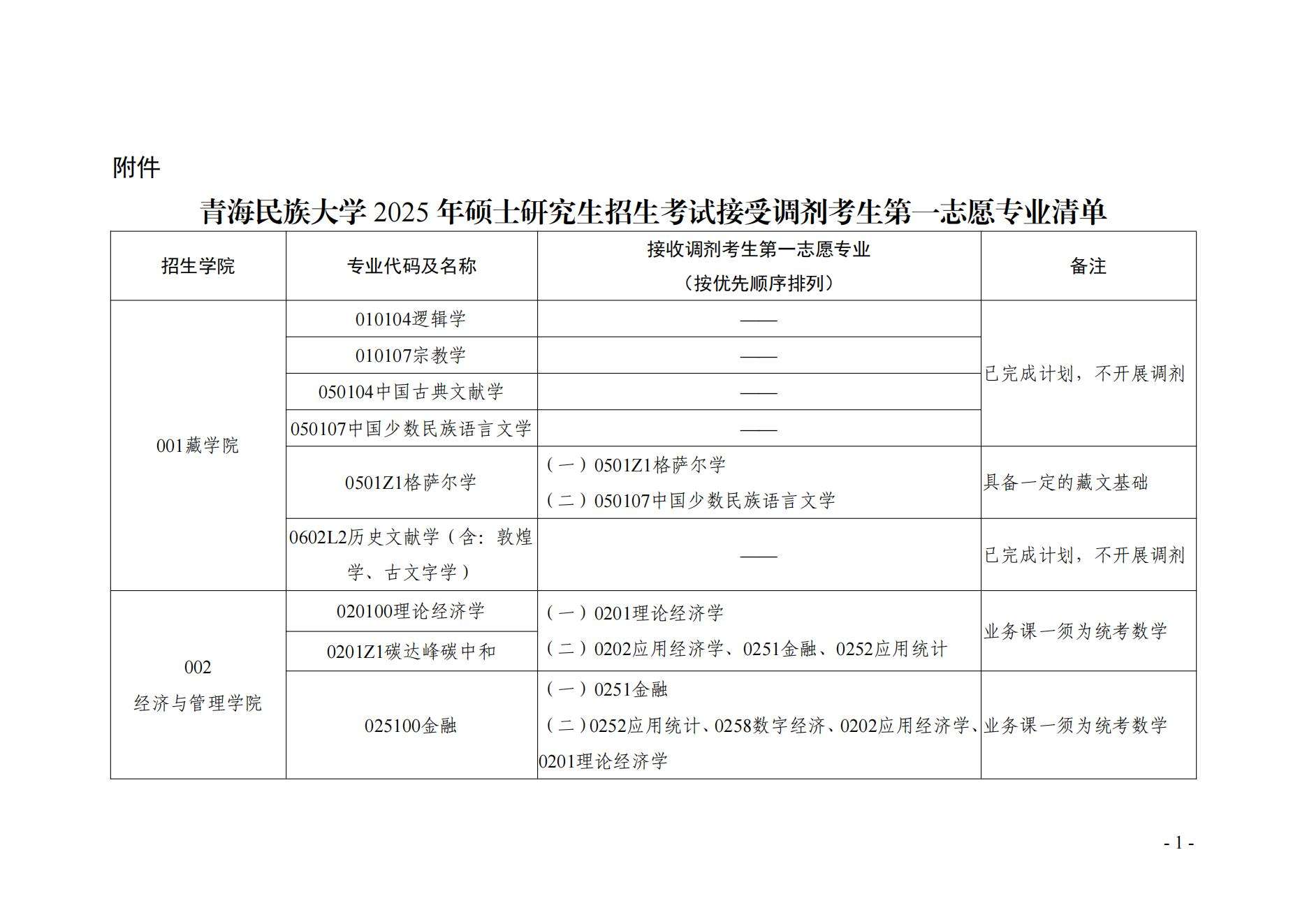 附件:青海民族大学2025年硕士研究生招生考试接受调剂考生第一志愿专业清单