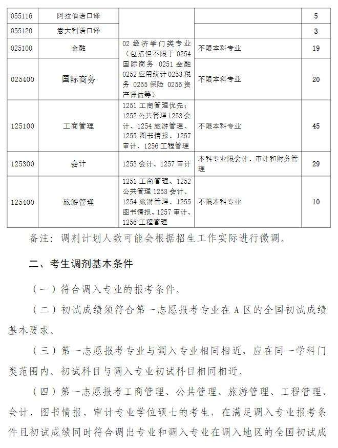 (三)择优调剂。我校将在调剂系统关闭后审核考生调剂资格,通过中国研究生招生信息网调剂系统向获得复试资格的考生发送复试通知,请考生填报志愿后耐心等待。对申请同一招生单位同一专业、初试科目完全相同的调剂考生,按考生初试成绩择优遴选进入复试。
