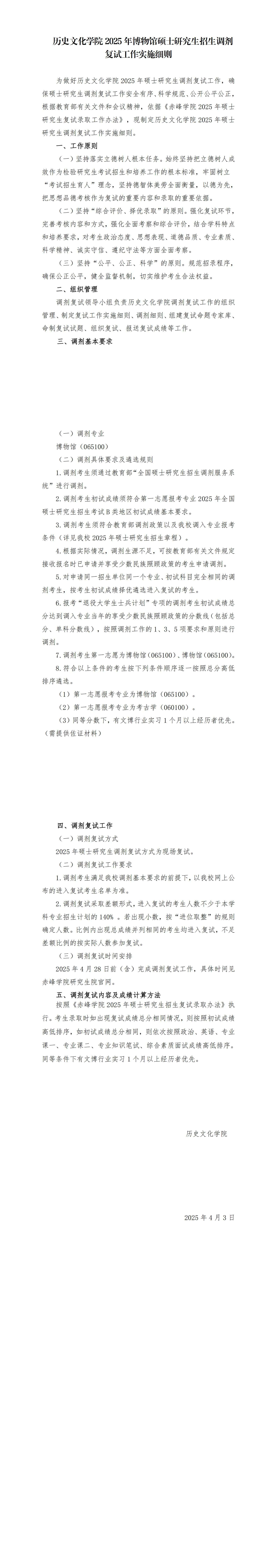 赤峰学院历史文化学院2025博物馆硕士调剂复试细则