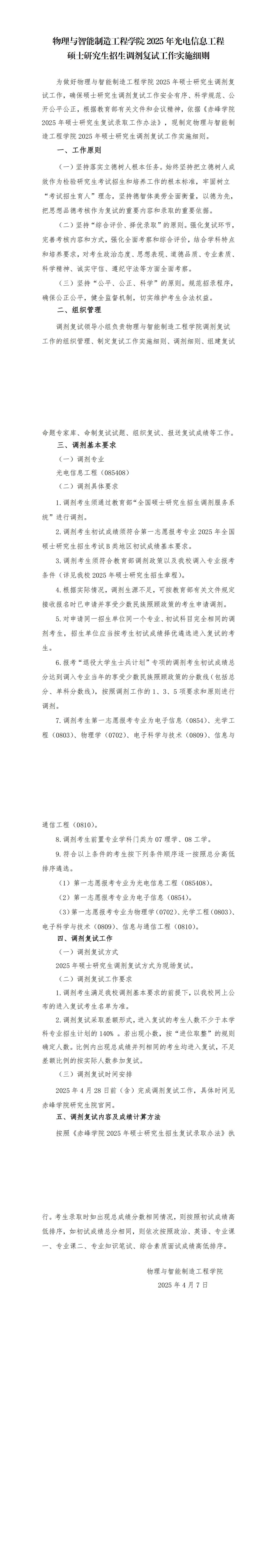 赤峰学院2025年光电信息工程硕士调剂复试细则