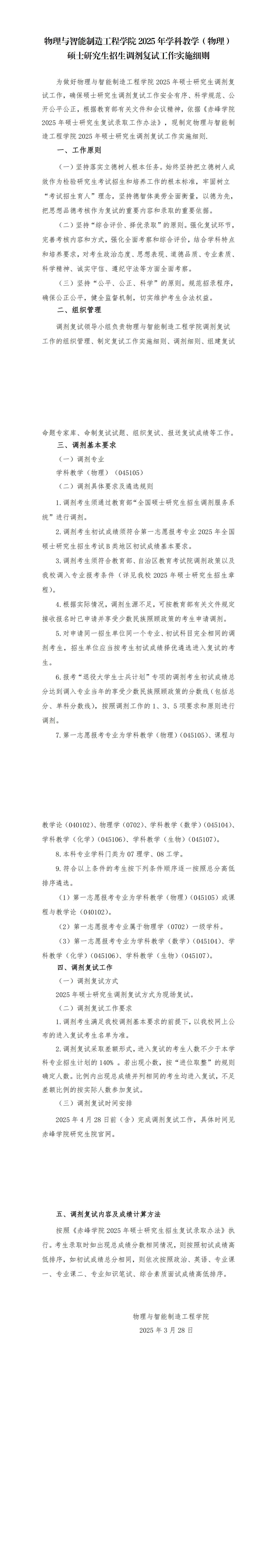 赤峰学院2025学科教学(物理)工程硕士调剂复试细则