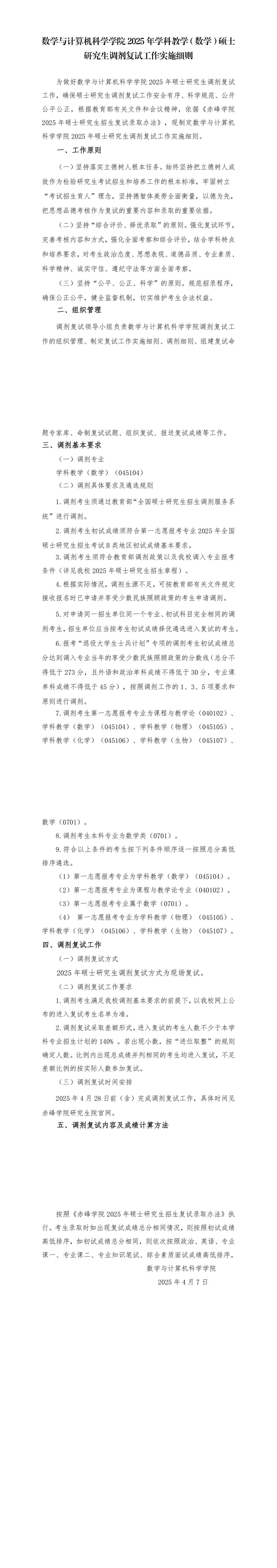 赤峰学院2025年学科教学(数学)硕士调剂复试细则