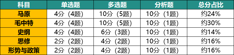 2026年考研政治题型主要包括单项选择题、多项选择题和分析题三种,总分100分,考试时间为180分钟(8:30-11:30)。以下是详细说明: