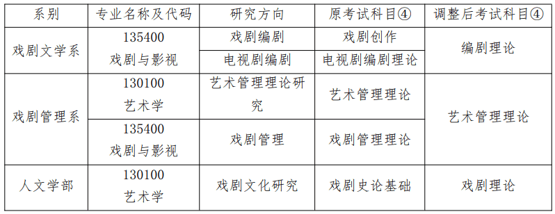 中央戏剧学院调整2026考研研究方向初试科目的说明