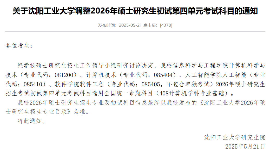中国农业科学院2026年考研初试科目的调整通知 各位考生: 根据相关政策和要求,我院对2026年硕士研究生招生考试初试科目进行了调