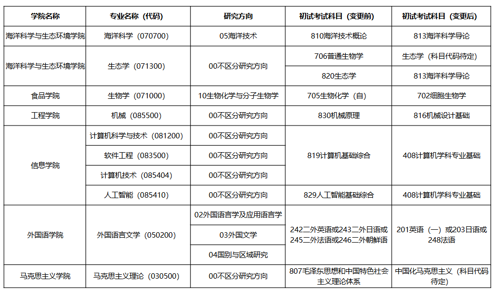 上海海洋大学2026年考研初试自命题科目拟变更的通知