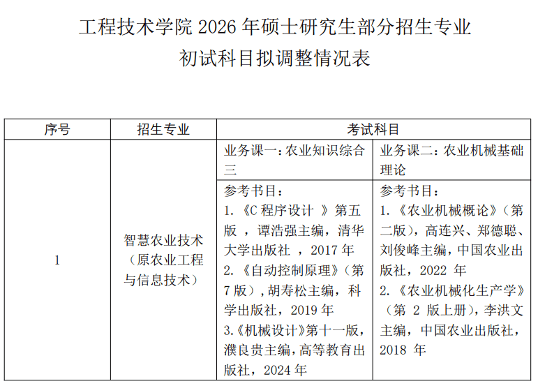 东北农业大学调整2026年考研初试科目的通知 各位硕士考生: 我校拟将2026年硕士研究生招生考试初试科目进行调整优化,为方便各位