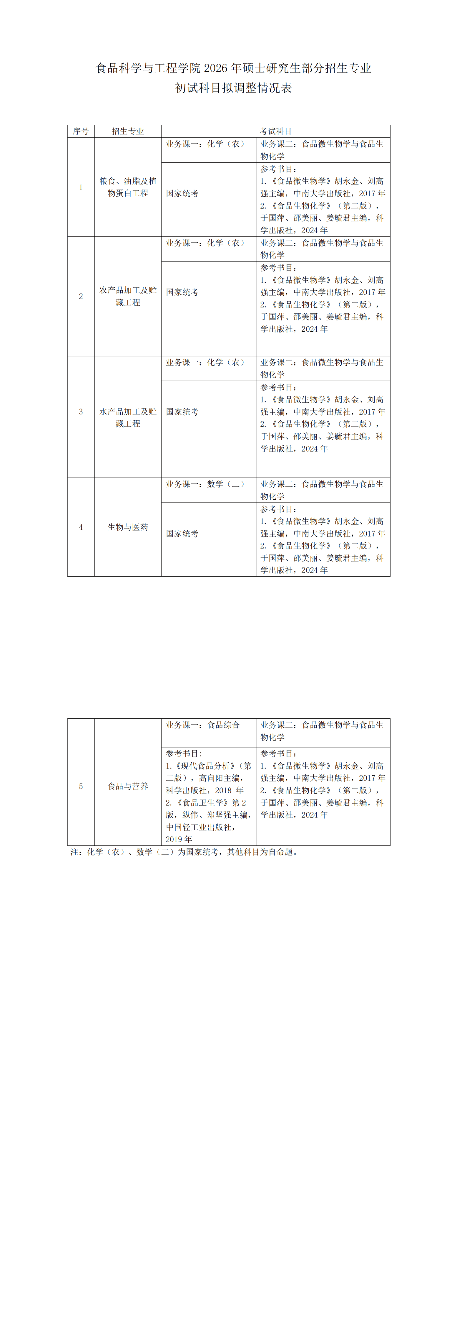 吉林农业大学植物保护学院2026考研初试科目调整表