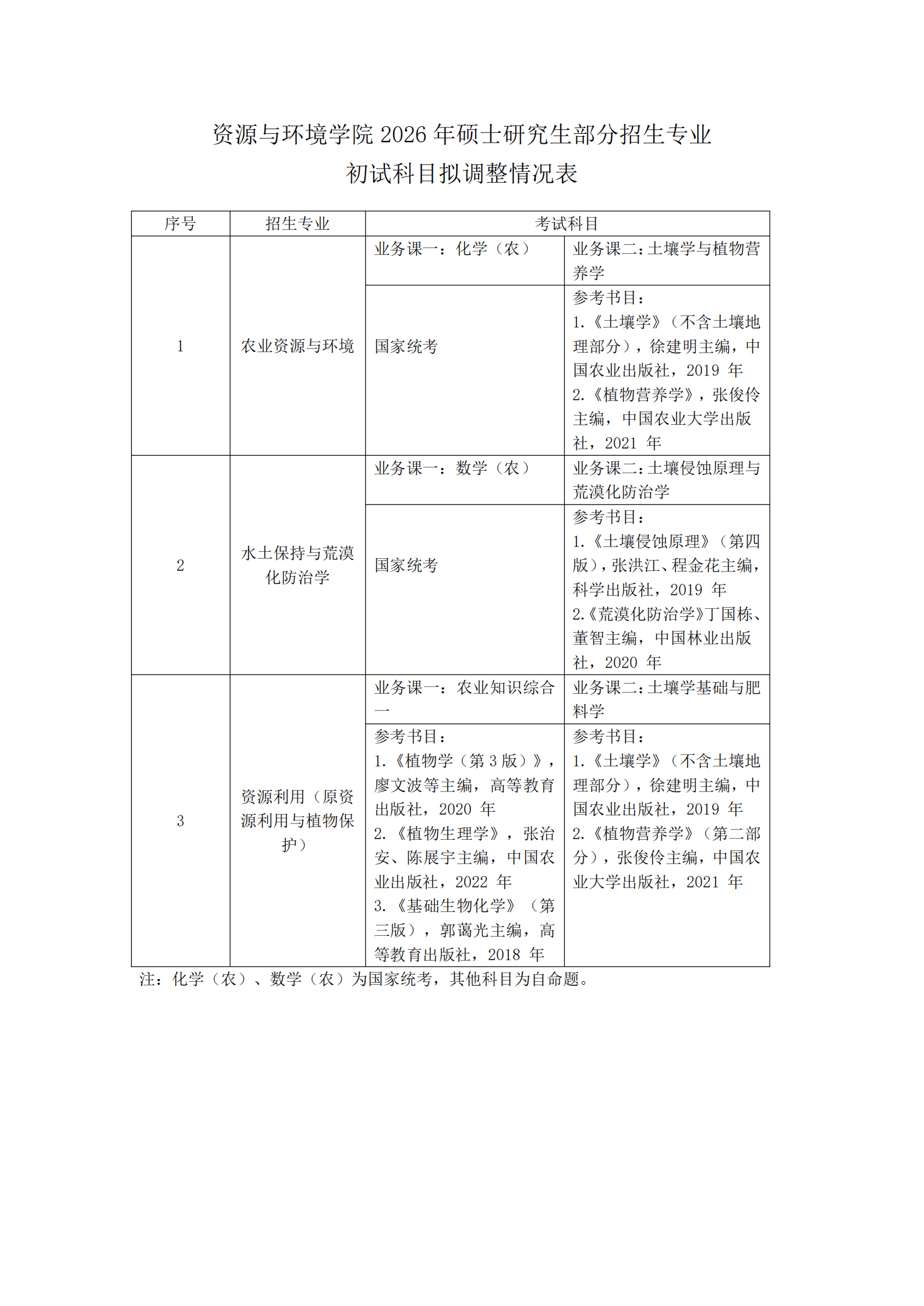 吉林农业大学信息技术学院2026考研初试科目调整表