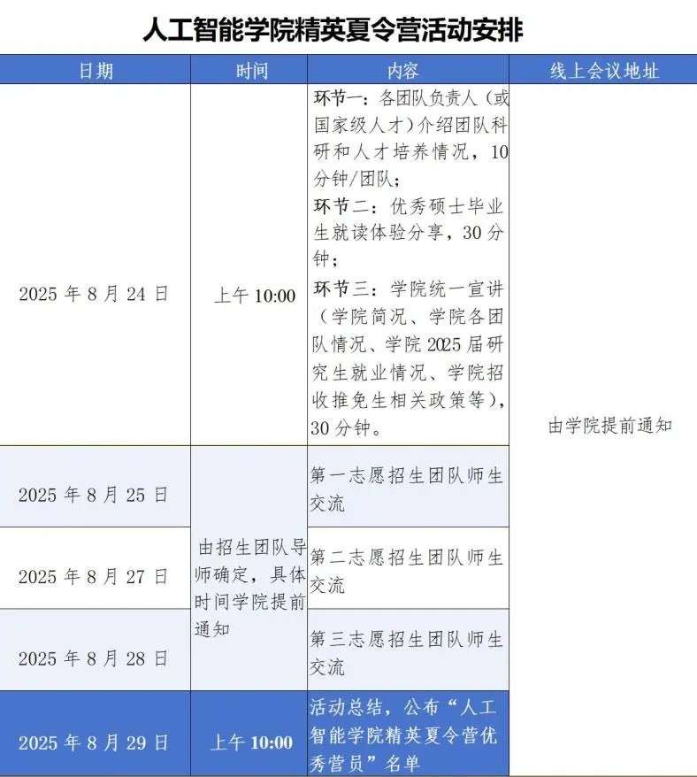 本届夏令营拟招收约200人,采用线上形式进行,活动日程共六天(2025年8月24日—8月29日)。