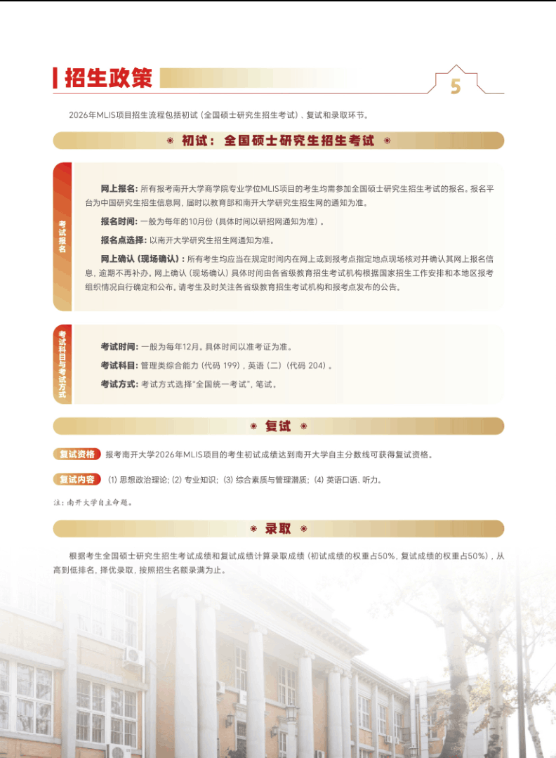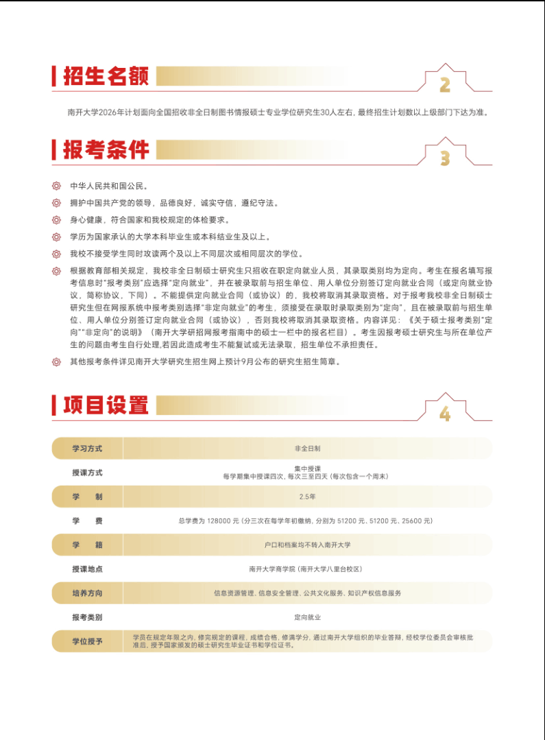 本文关键字: 2026年南开大学MLIS项目招生信息