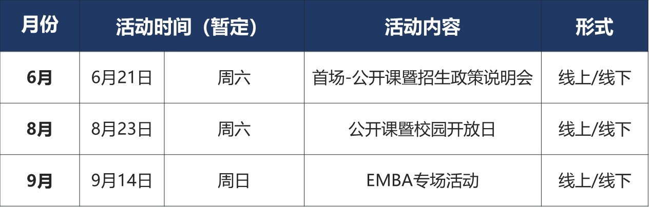 招生活动包括招生政策说明会,招生专场、招生沙龙等,考生可根据自身需要报名参加下列活动。