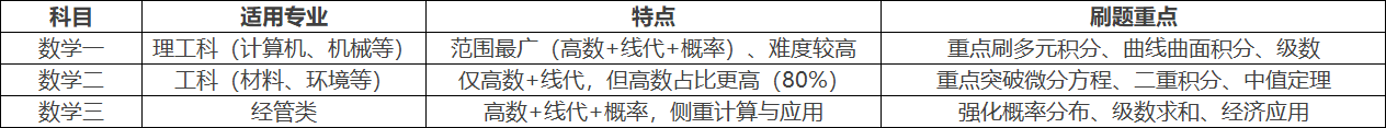 考研数学是拉开差距的关键科目,刷题方法不对,努力可能白费! 数学一、二、三的难度和侧重点不同,但核心逻辑一致:吃透真题 + 针对性强化 = 高分保障。