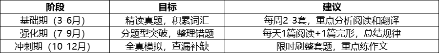 限时训练:后期严格按考试时间(每篇阅读15-20分钟)模拟,避免考场时间不够。