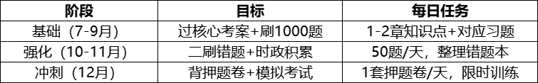 11月前主攻选择题,12月再练主观题(每天1-2题,限时20分钟)。