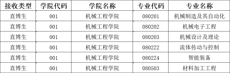 我院接收本科直博生学科见下图,学制为5年。直博生招生人数不超过该学科当年博士生招生人数的20%。