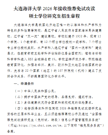 为做好我校2026年推荐免试攻读硕士学位研究生(以下简称推免生)的接收工作,结合我校实际情况,特制定本章程。【各省市院校2026年推荐免
