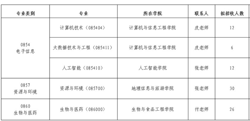 2026年我校招收电子信息、资源与环境、生物与医药三个硕士专业学位类别全日制研究生。最终招生人数以教育部下达的2026年招生计划为准。