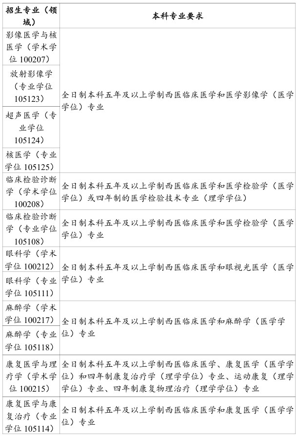 临床医学专业,其中,部分临床医学专业(领域)仅限相关对应的本科专业的