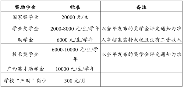 学金、学业奖学金、校长奖学金、广西英才助学金、三助岗位,建立多元奖