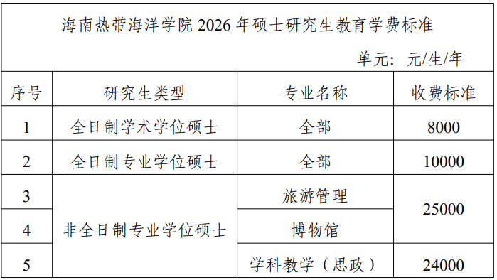 2026 年学校招生专业及各专业拟招生计划详见《海南热带海洋学院 2026 年硕士研究生招生专业目录》(以下简称招生专业目录)。学校2025年录取硕士研究生347人(含“退役大学生士兵计划”11人),2026 年招生专业目录上公布的拟招生计划人数是以2025 年实际录取总人数为基数进行编制的,2026 年实际招生人数以国家当年正式下达的招生计划文件为准。