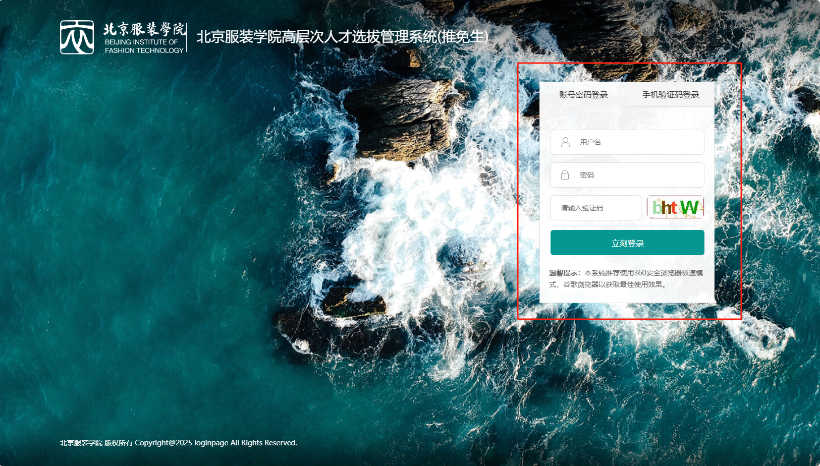 “北京服装学院高层次人才培养管理数字化平台”推免生登录网址:https://yjszs.bift.edu.cn/tp/zs/login/toLogin/tm