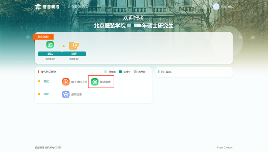 确认参加北京服装学院推免硕士研究生复试的考生,须登录“北京服装学院高层次人才培养管理数字化平台”,完成复试费缴纳、电子材料提交等流程。