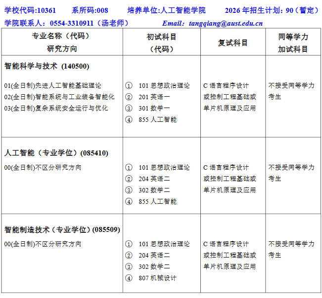 安徽理工大学计算机科学与工程学院2026年研究生招生专业目录