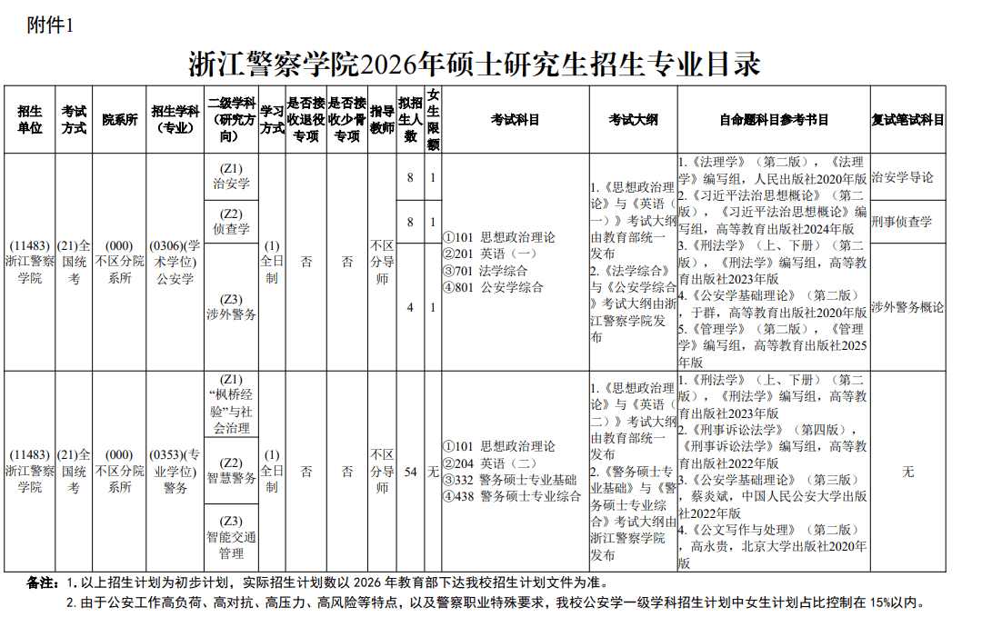 我校根据该比例自主设定公安学一级学科下设各二级学科的女生招生计划数,即治安学、侦查学、涉外警务等 3 个二级学科女生招生计划数原则上各不超过 1 名。