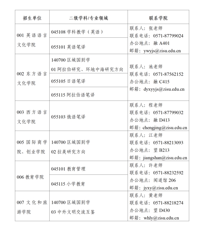 各位考生也可通过拨打电话或邮件咨询各招生学院。